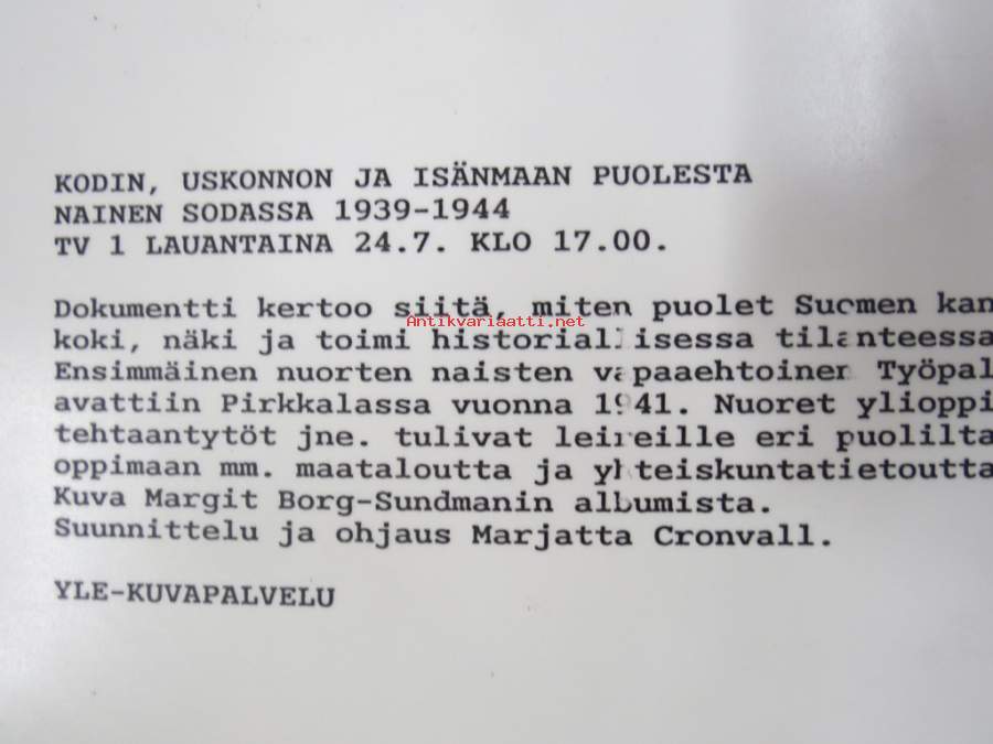 | Saatavilla | 1 kpl | | Kunto | K3 | | Sidonta/painoasu | Valokuva |