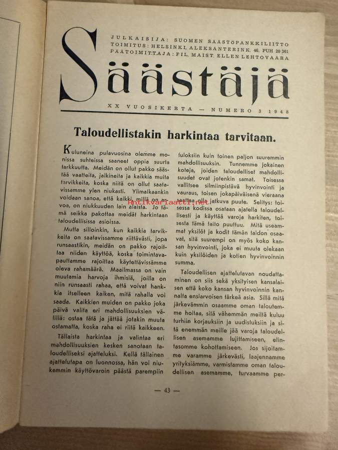 Säästäjä 1948 nr 3 -säästöpankkien asiakaslehti, artikkeleita, sarjakuvia yms.