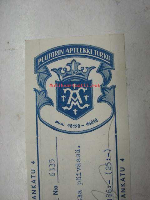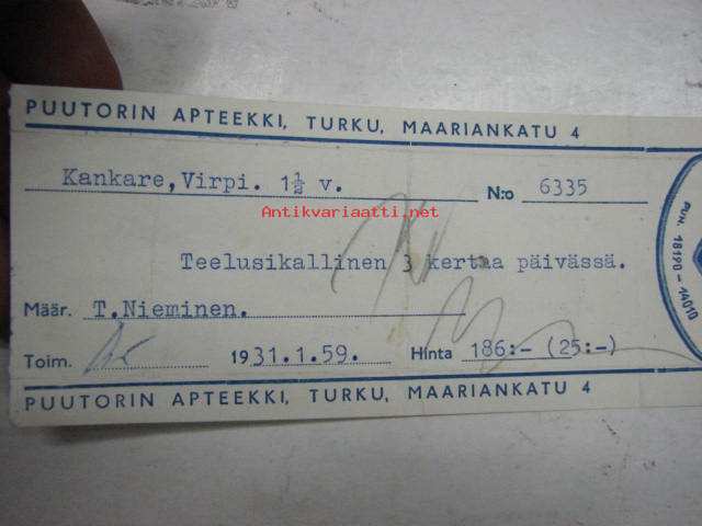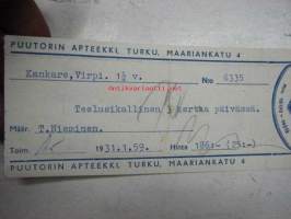 Puutorin Apteekki, Turku, 31.1.1959 -apteekkisignatuuri