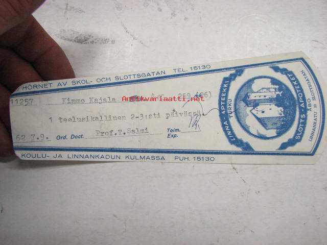 Linna-Apteekki, Turku, 7.9.1962 -apteekkisignatuuri