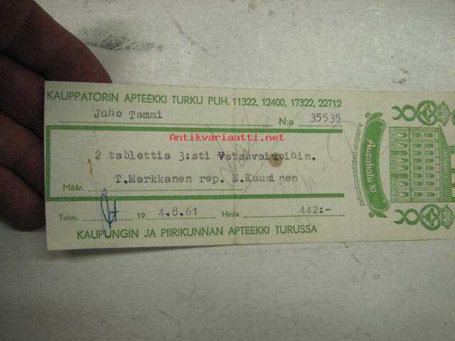 Kauppatorin Apteekki, Turku, 4.8.1961 -apteekkisignatuuri