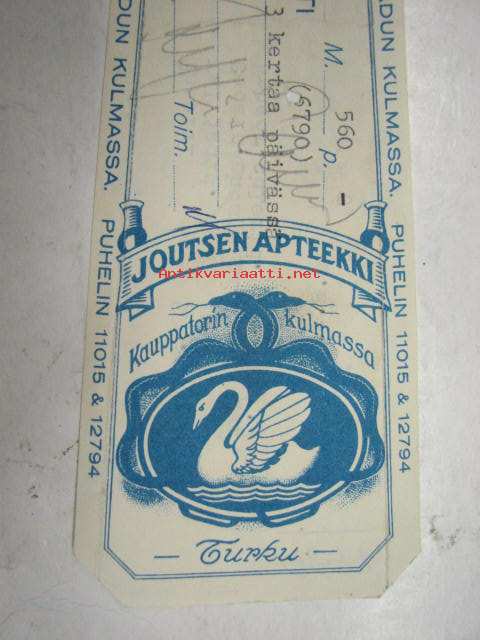 Joutsen Apteekki, Turku, 30.6.1962 -apteekkisignatuuri