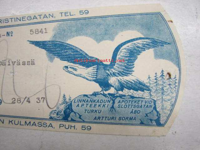 Linnankadun Apteekki, Turku, 28.4.1937 -apteekkisignatuuri