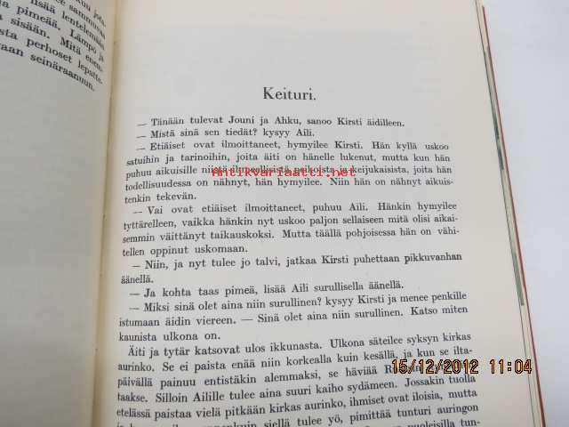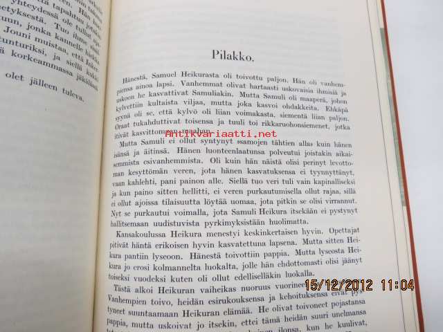| Saatavilla | 1 kpl | | Julkaisuvuosi | 1948 | | Sivuja | 425 | | Painos | 4. | | Kunto | K2 | | Etulehdestä leikattu ed. omist. nimi pois | | Sidonta/painoasu | Sidottu (kovak.) | | Kielet | Suomi |