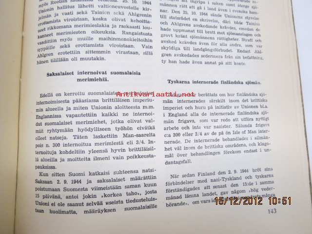 Wälläri Niilo, Suomen Merimies-Unioni, 195118 x 24 cm kirja.