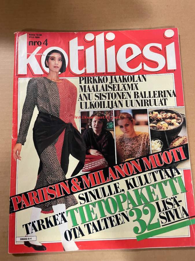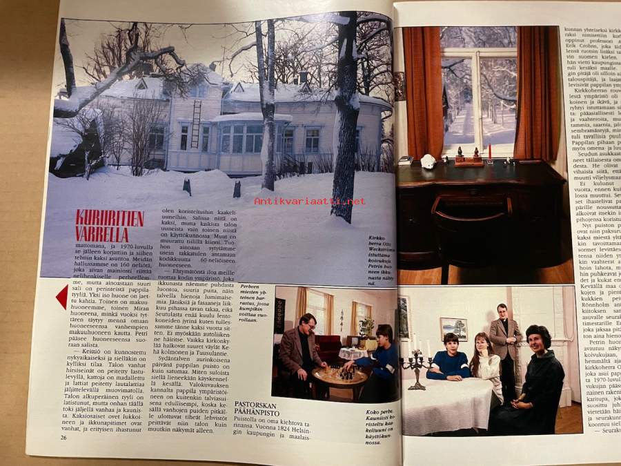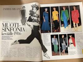 Kotiliesi 1986 nr 4, Muotisinfonia, Pappila puiston keskellä [Nils Rönnholm perheineen), Juhani Parta - (Oy Gustaf Paulig Ab]
