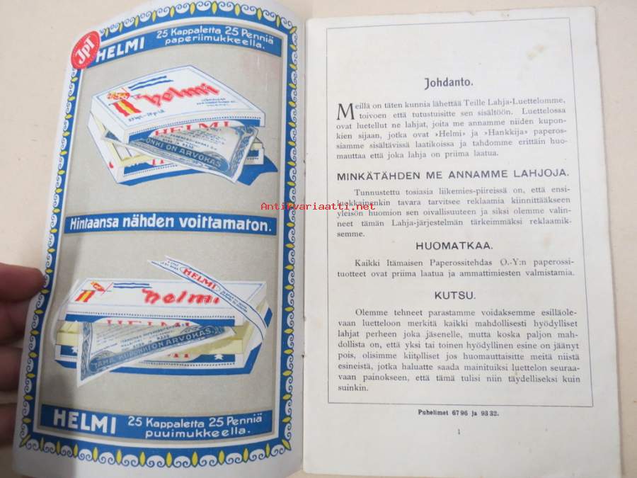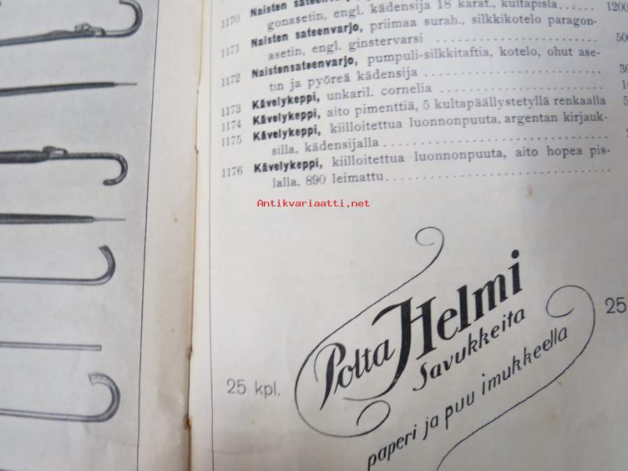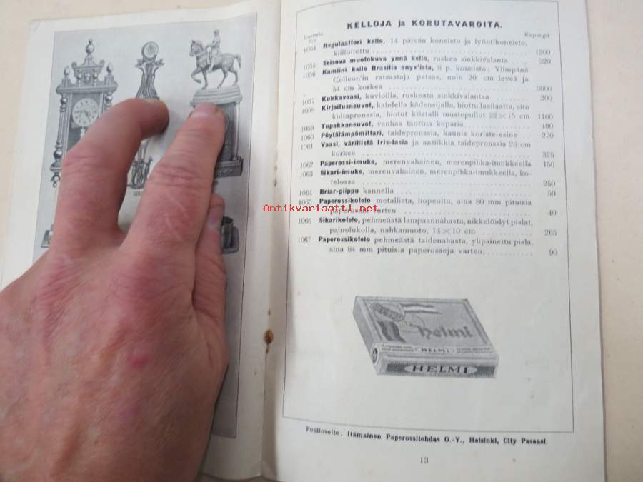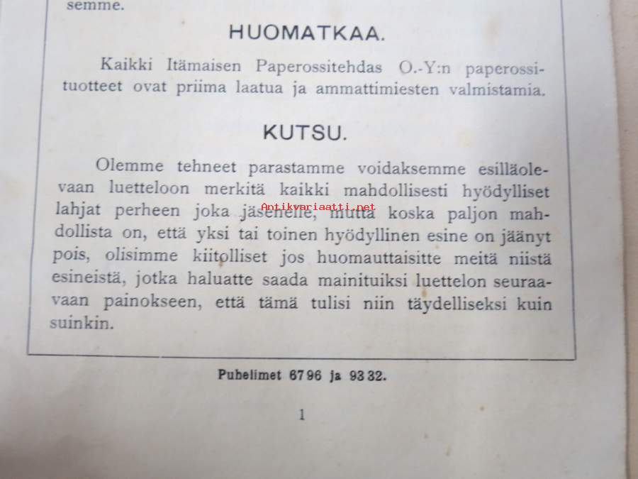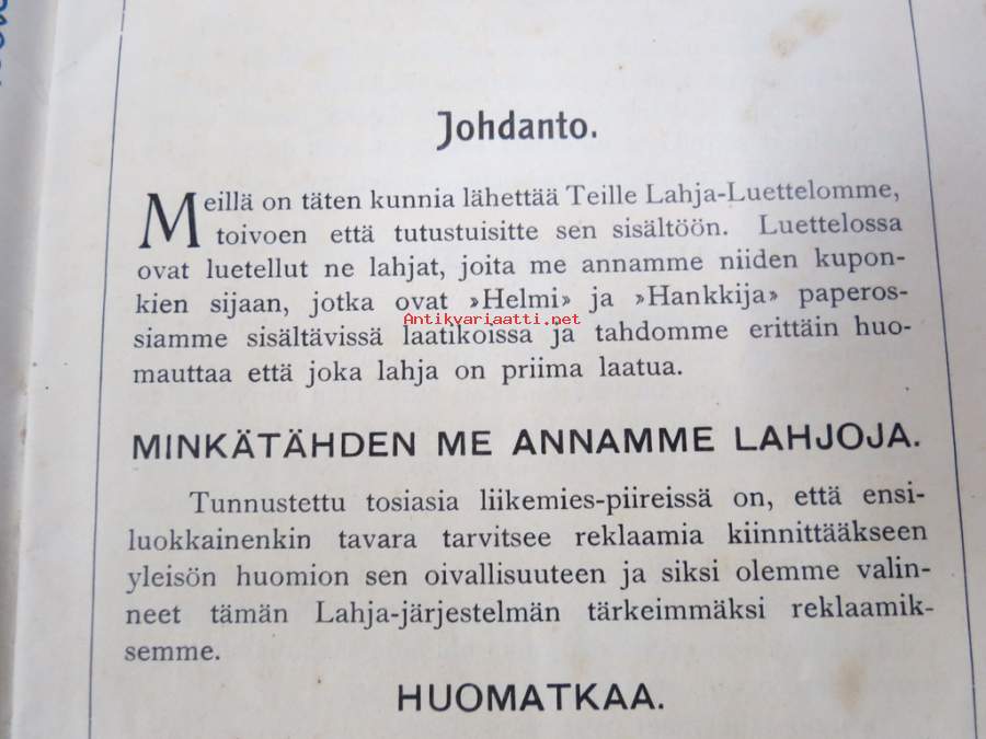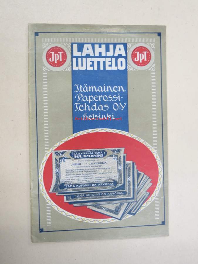 Itämainen Paperossi-Tehdas Oy - Lahjaluettelo -tupakka-askien mukana tulleiden kuponkien vaihto luettelossa oleviin esineisiin
