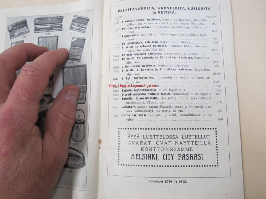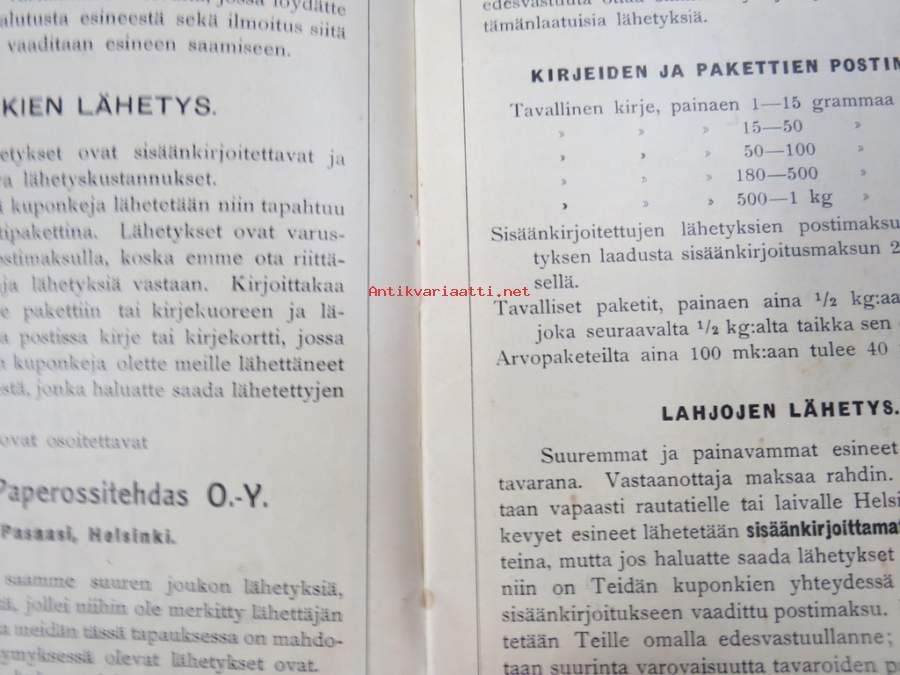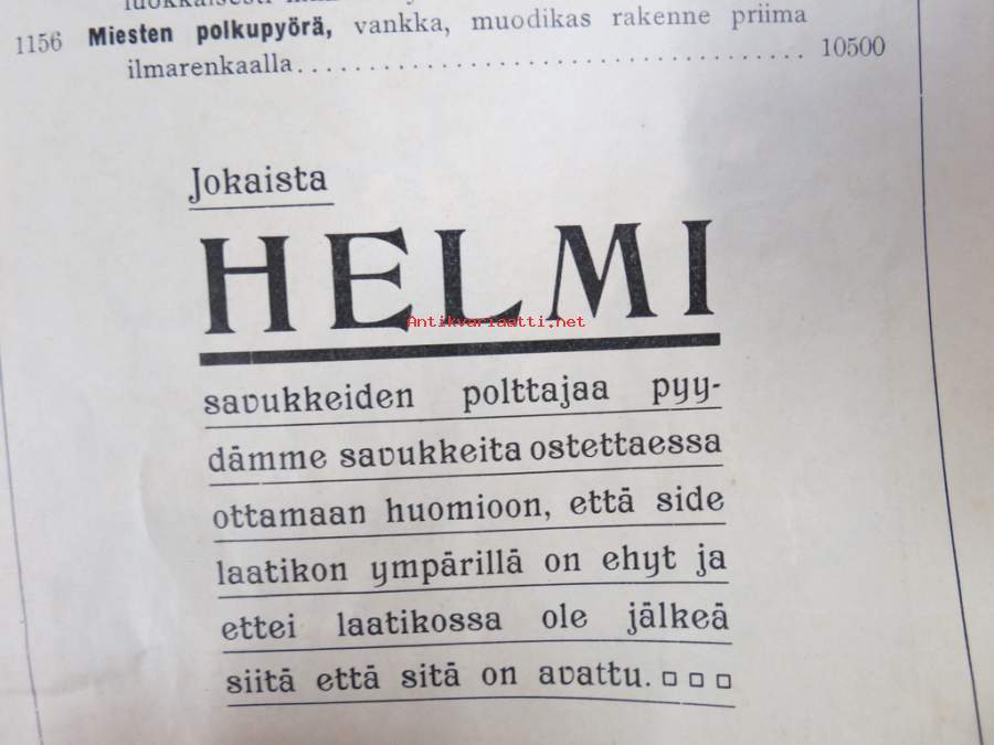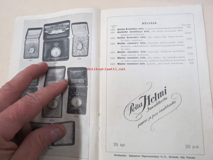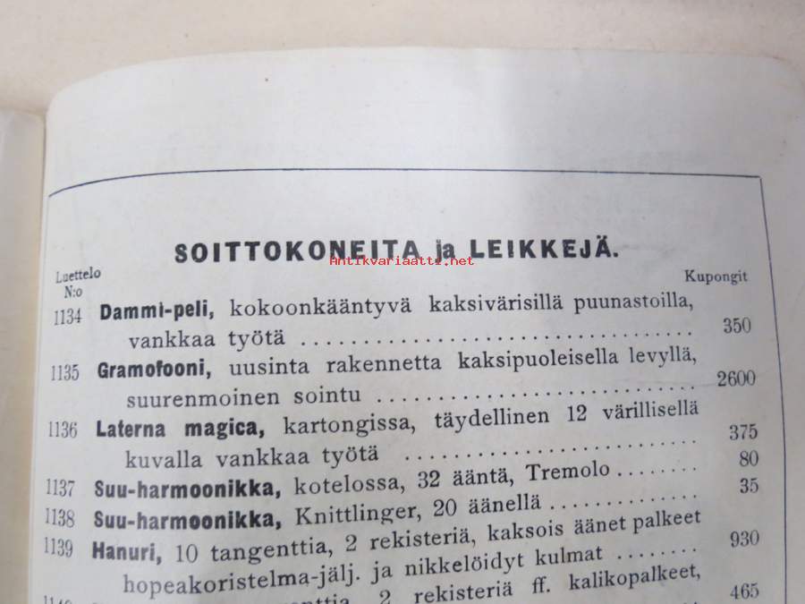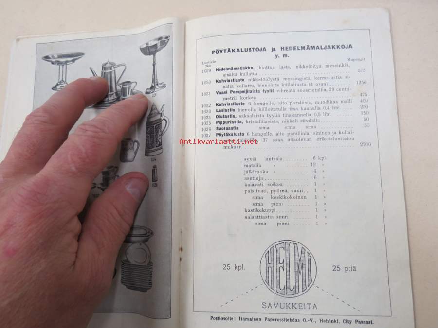 Itämainen Paperossi-Tehdas Oy - Lahjaluettelo -tupakka-askien mukana tulleiden kuponkien vaihto luettelossa oleviin esineisiin