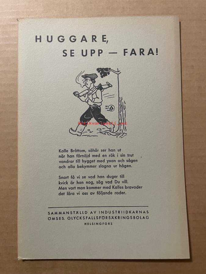 Sammanställd av Industriidkarnas öisessä. Olycksfallsförsäkringsbolag, 194615 x 22 cm kirja.