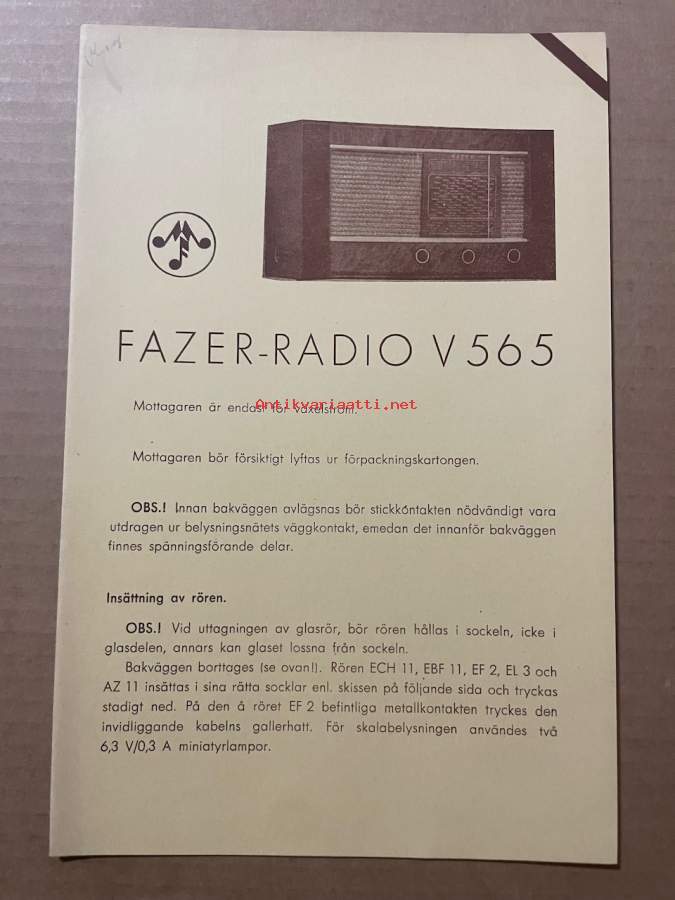 Fazer-radio V565 -käyttöohje ruotsiksi