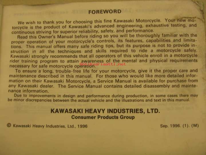 Kawasaki GPZ500S owner´s manual käyttöohjekirja