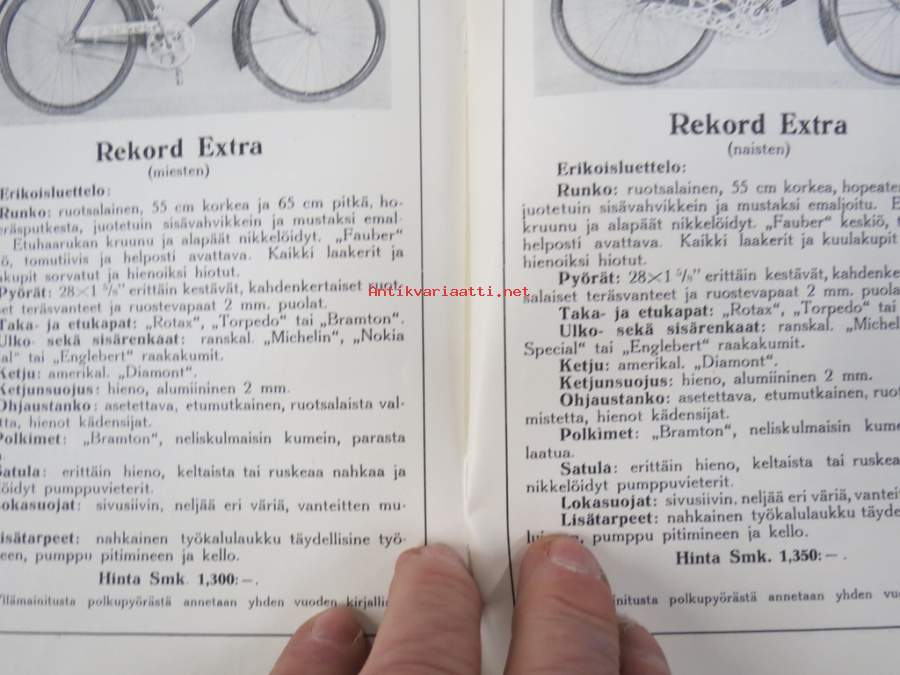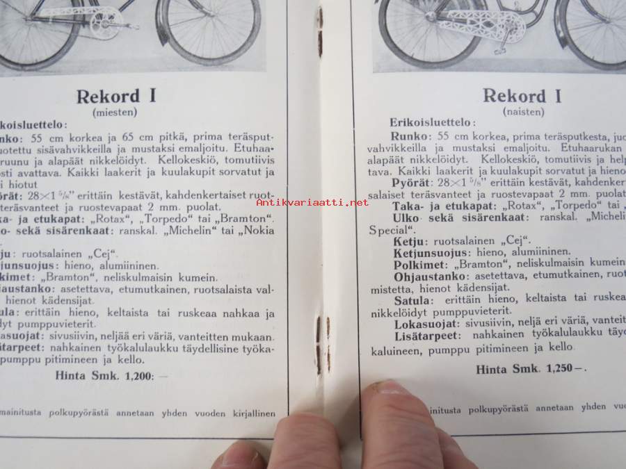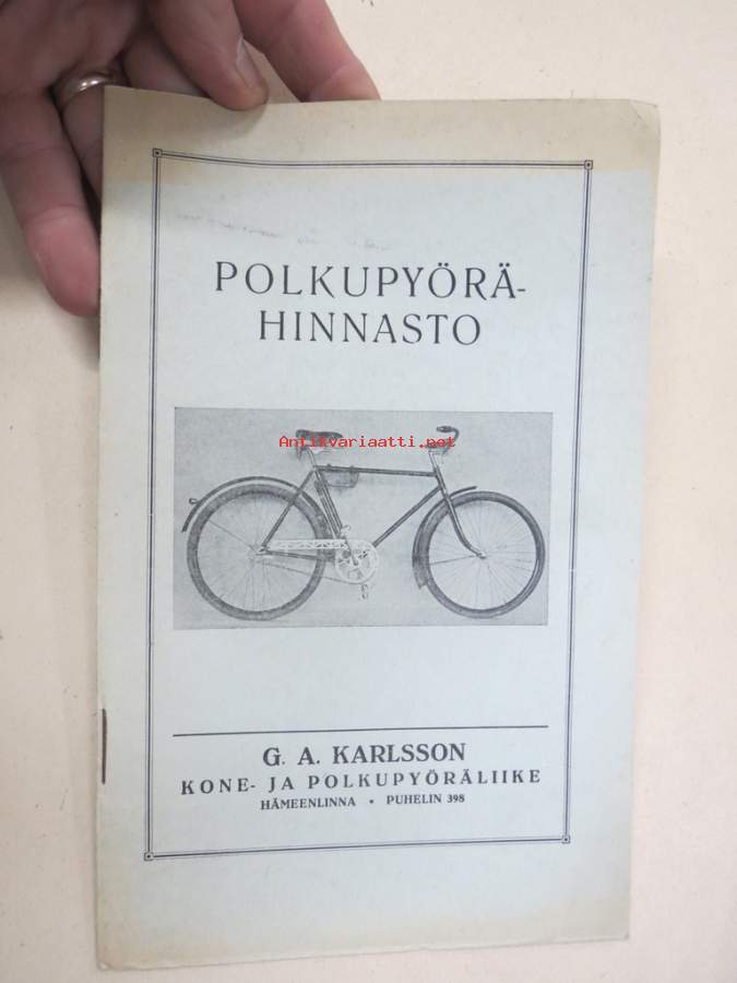 Polkupyörähinnasto 1931 Kone- ja polkupyöräliike G.A. Karlsson, Hämeenlinna -tuoteluettelo / hinnasto