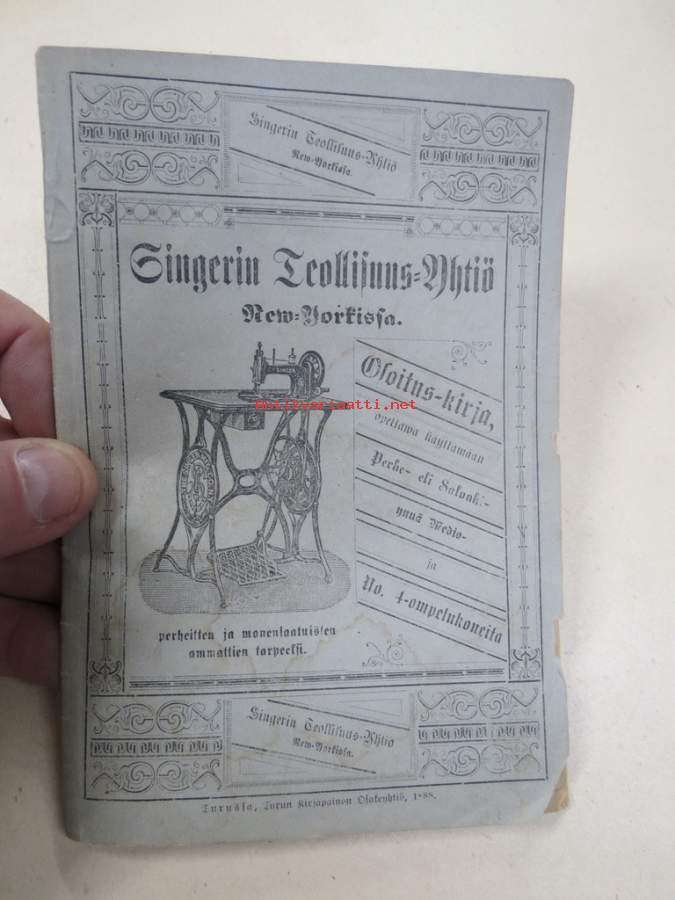 Singerin Teollisuus-Yhtiö New-Yorkissa. Osoitus-kirja opettawa käyttämään Perhe- eli Salonki- ynnä Medio- ja No. 4-ompelukoneita -käyttöohjekirja v. 1888