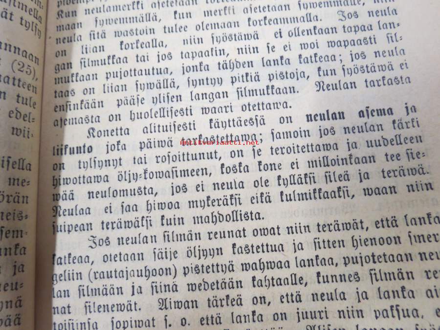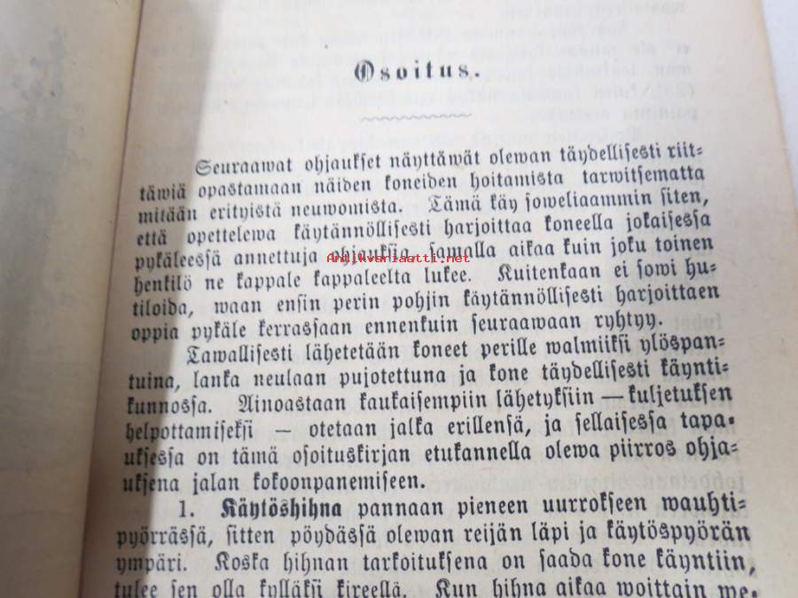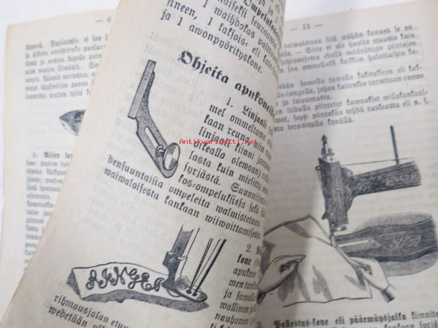 11 x 16 cm. Erittäin harvinainen Singerin käyttöohjekirja Suomessa myynnin alkuvuosilta, Suomen edustajan G. Heidlingerin kustantama.