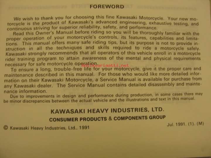 Kawasaki ZZ-R250 owner´s manual käyttöohjekirja