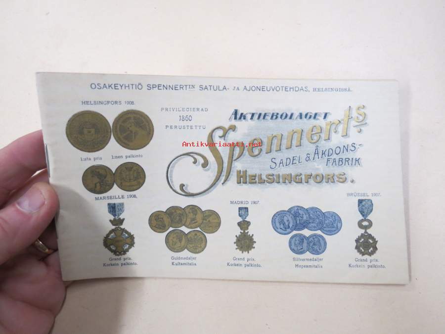 Aktiebolat Spennerts Sadel & Åkdonsfabrik i Helsingfors - Oy Spennertin Satula- ja Ajoneuvotehdas Helsinki -tuoteluettelo v. 1908
