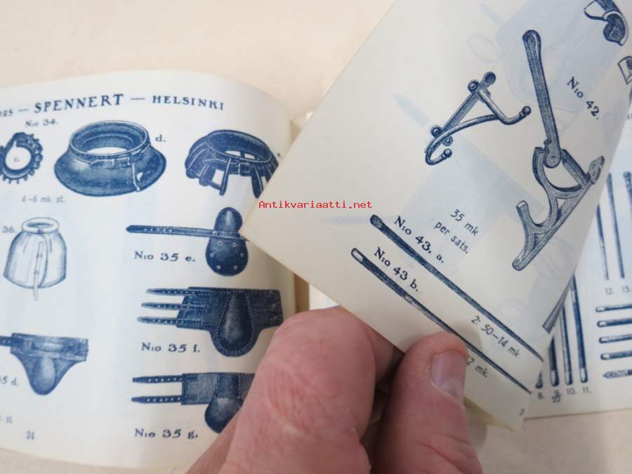 Spennert, 190811 x 18 cm luettelo, erilaisia varusteita etupäässä hevosille, jotain myös ihmisille ja koirille...