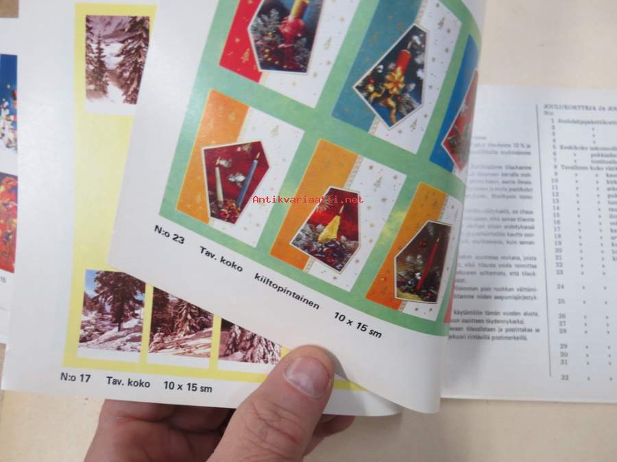 Joulukortteja ja joulutavaroita - N. Järvinen (Tampere) Hinnasto 1972