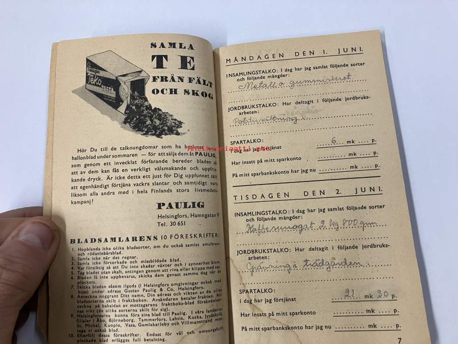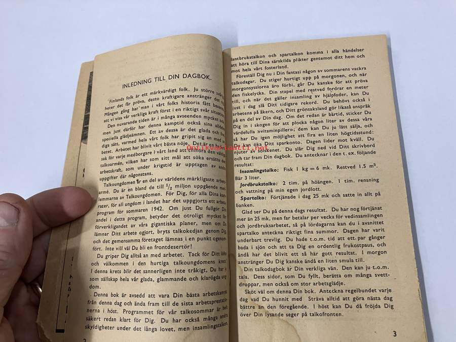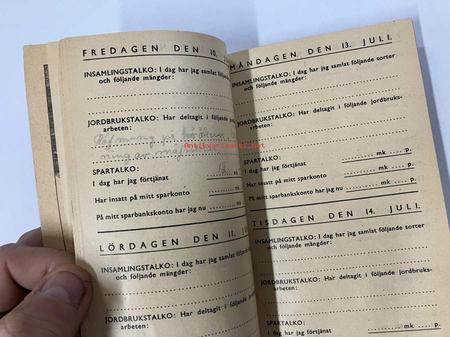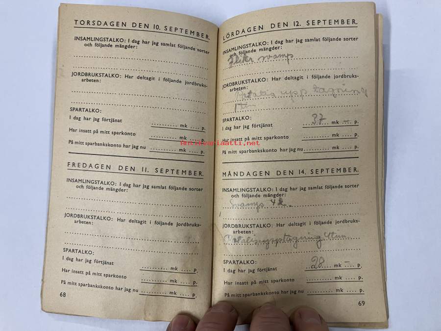 Talkodagbok 1942, Göran Selin -talkoopäiväkirja sota-ajalta, sisältää värillisen sienikartan