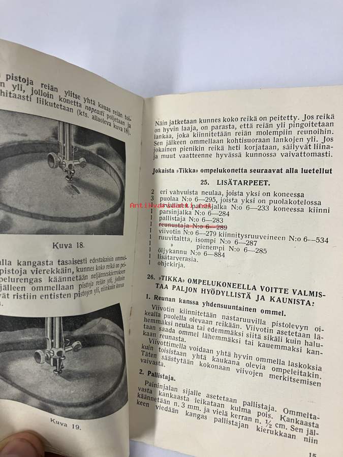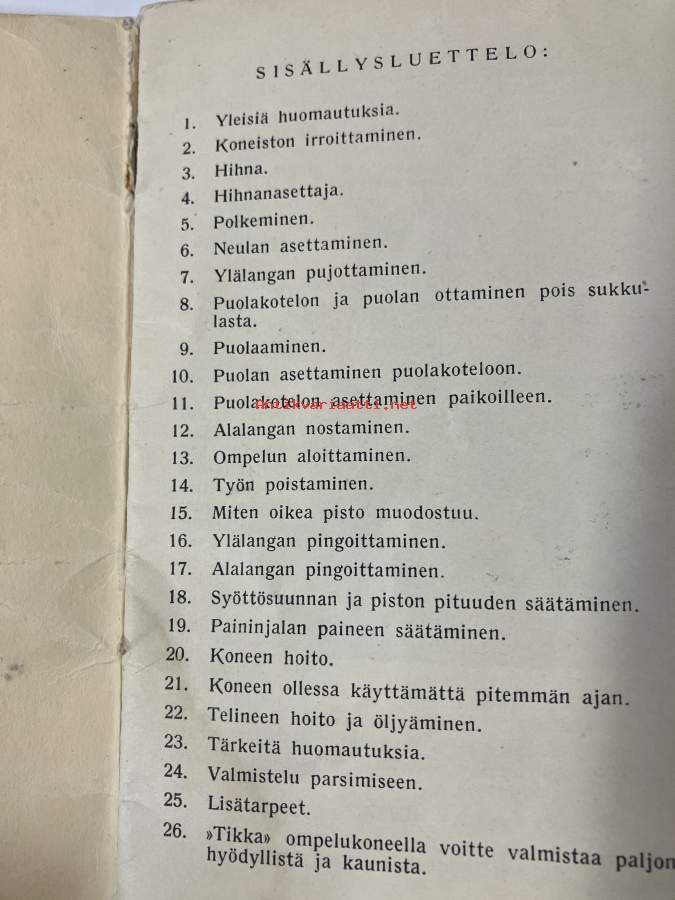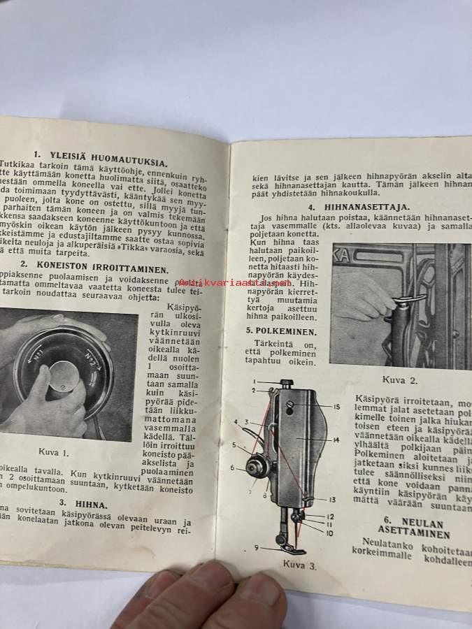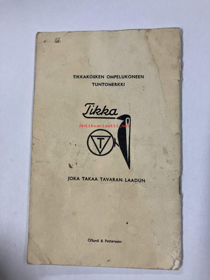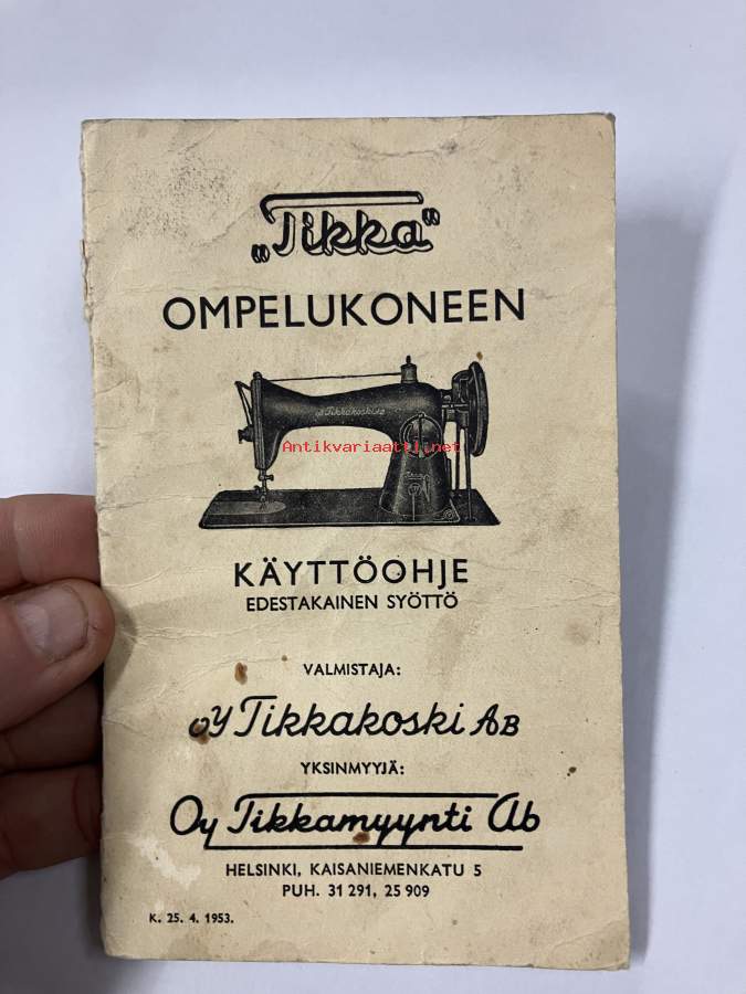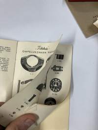 Tikka ompelukoneen käyttöohje + varaosakuvasto 1953
