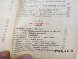 | Saatavilla | 1 kpl | | Julkaisuvuosi | 1942 | | Sivuja | 272 | | Painos | 1. | | Kunto | K2 | | Sidonta/painoasu | Nidottu (pehmeäk.) | | Kielet | Suomi, Unkari |