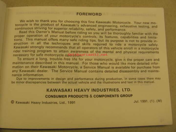 Kawasaki ZZ-R250 owner´s manual käyttöohjekirja