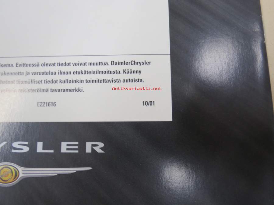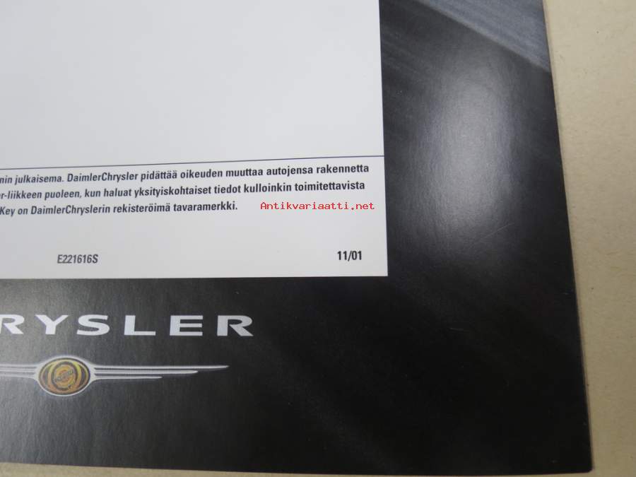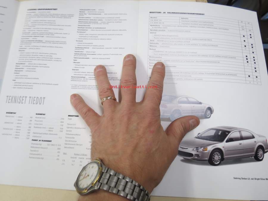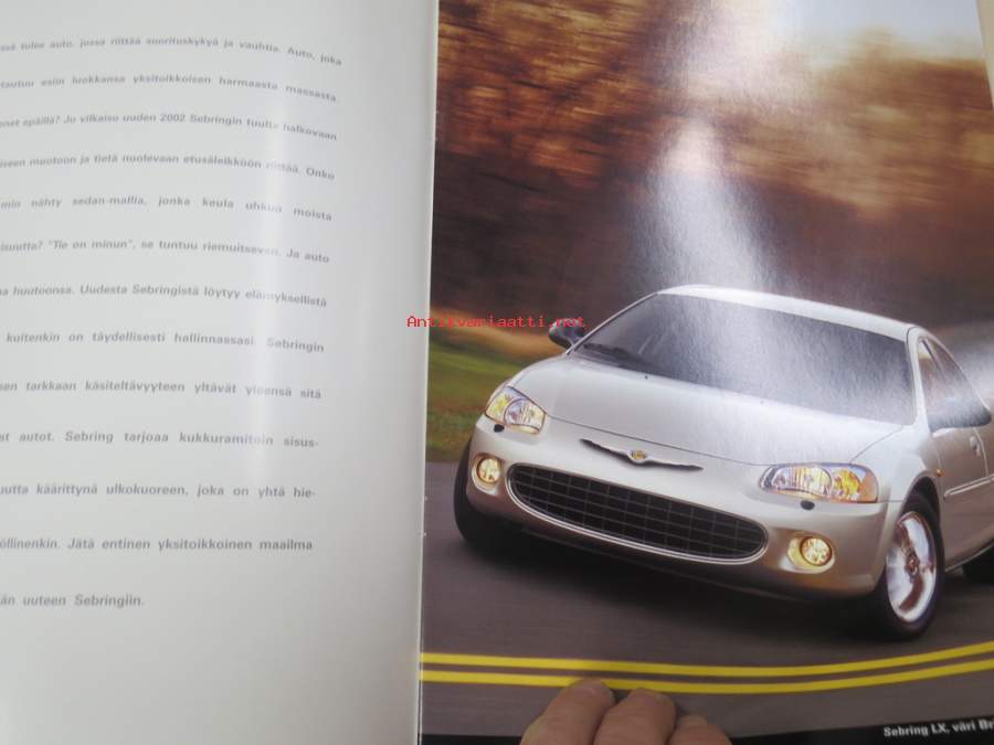 Chrysler Sebring 2002 -myyntiesite, varsinainen esite ja lisävaruste-esite yhdessä