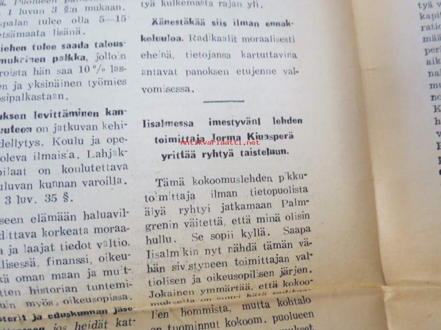Puhetilaisuus TampereellaTilanne Berliinissä, Reumatismi, Te olette syyllisiä, ym. Päätoimittaja Ernesti Hentunen, puolueensa äänenkannattaja, sisältää hyvinkin yksityiskohtaisia ja avoimia paljastuksia sekä syytöksiä yksityishenkilöistäkin.