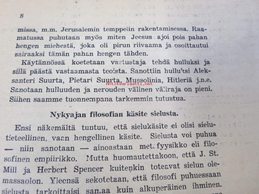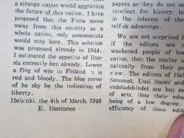 Stalin and Finland, Nykyajan filosofian käsitys sielusta, Angina pectoris, ym. Päätoimittaja Ernesti Hentunen, puolueensa äänenkannattaja, sisältää hyvinkin yksityiskohtaisia ja avoimia paljastuksia sekä syytöksiä yksityishenkilöistäkin.
