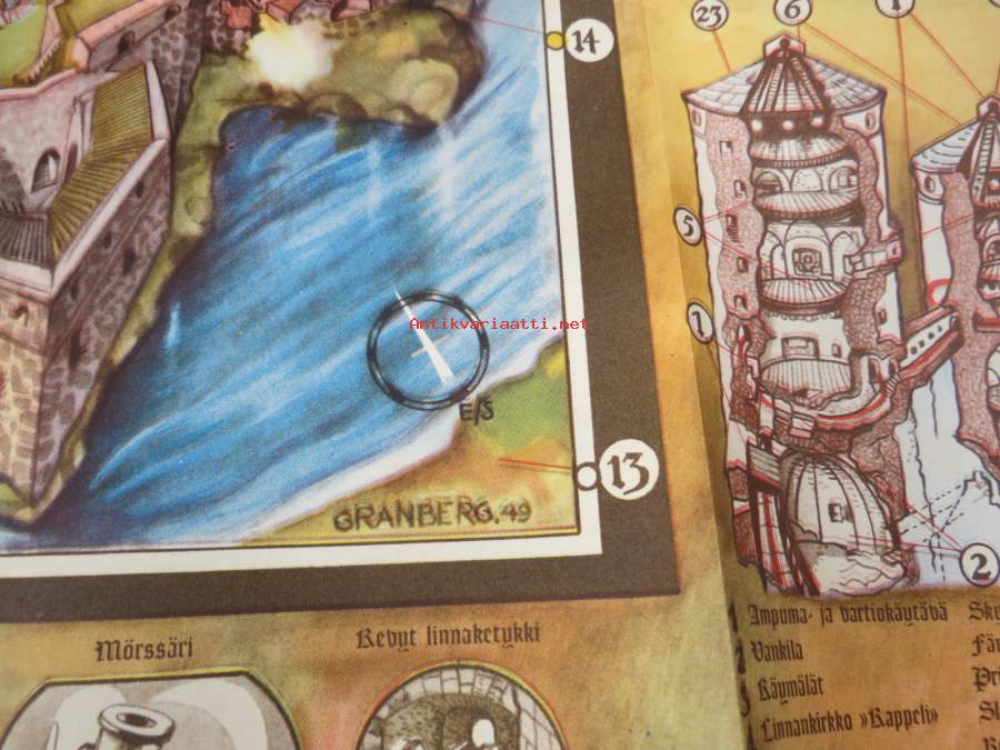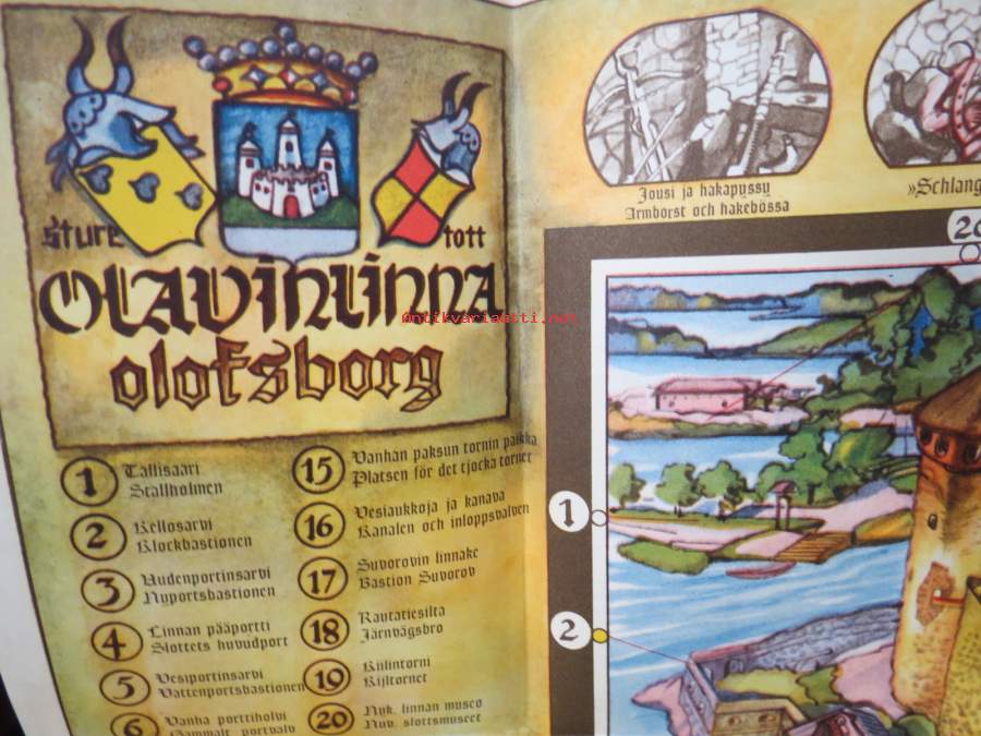 Olavinlinna - Olofsborg - Kuvitettu opas ja selostus - Illustrerad beskrivning - Map and guide -hieno piirroskuva linnasta