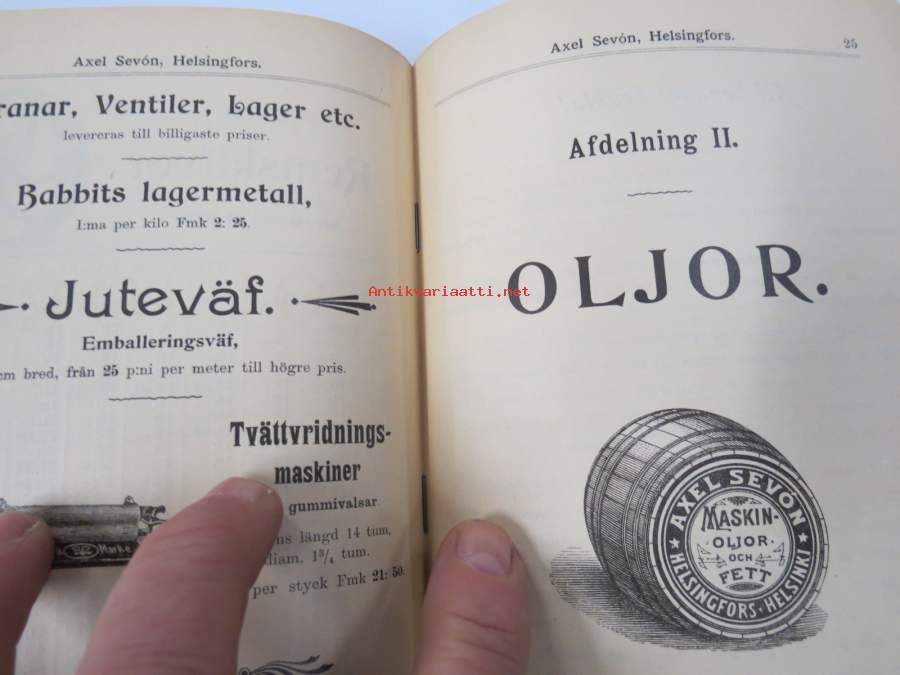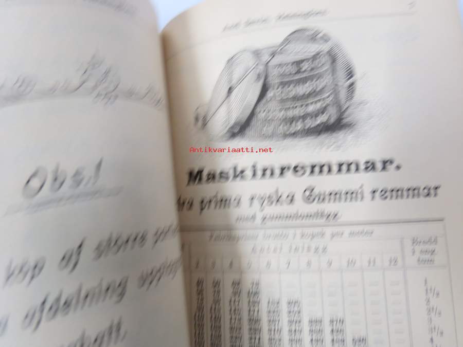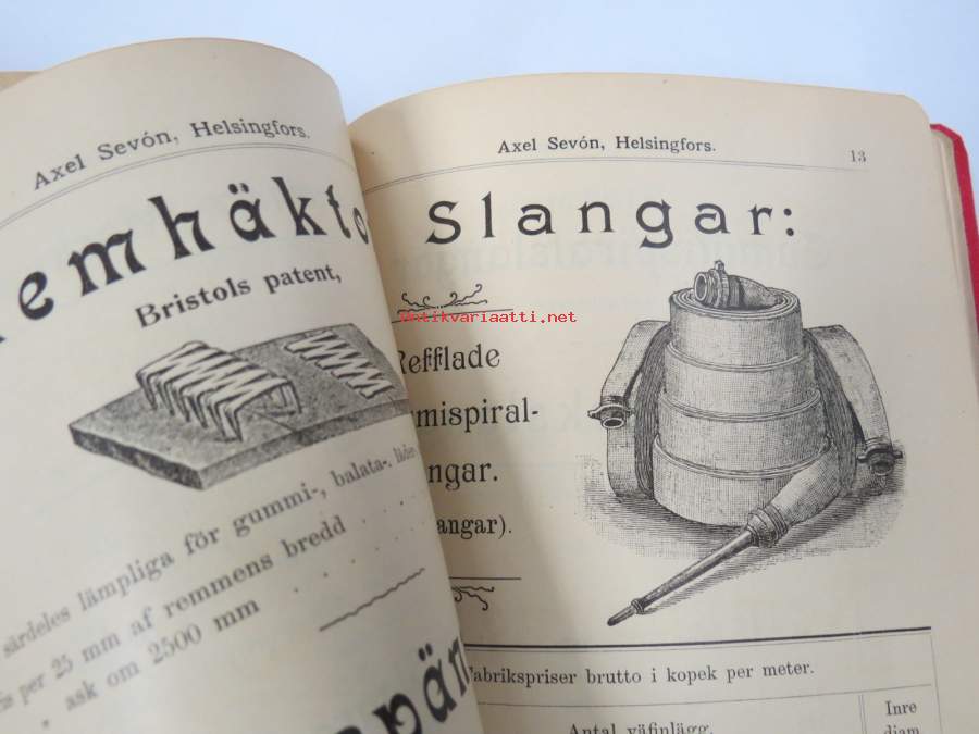 14 x 20 cm, uskomattoman upeat kannet, kaksaikileinen; Priskurant från Axel Sevón å maskinremmar, tekniska gummivaror, maskinförnödenheter, slangar, presenningar...