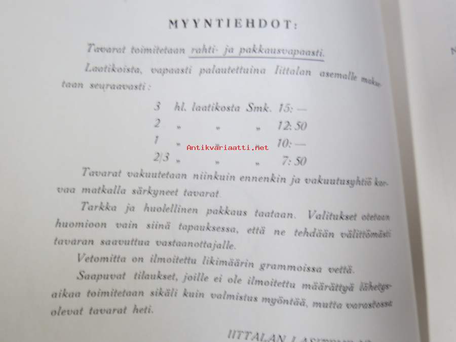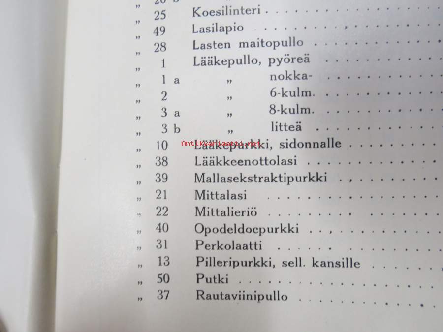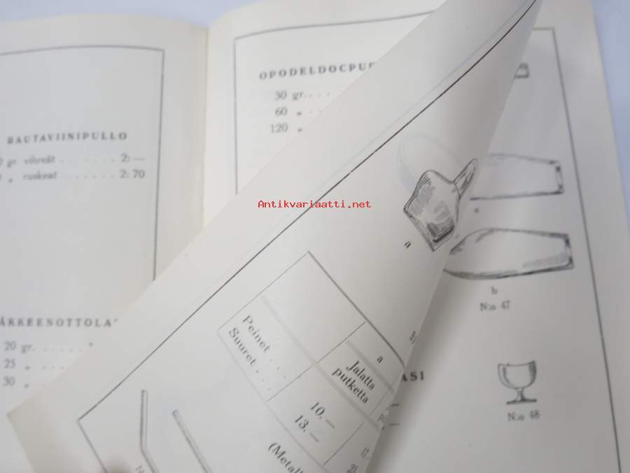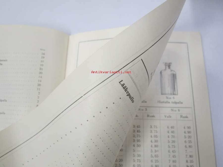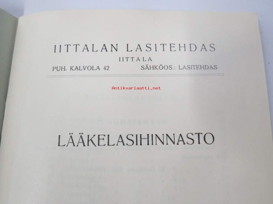 Iittalan Lasitehdas - Lääkelasihinnasto 1936