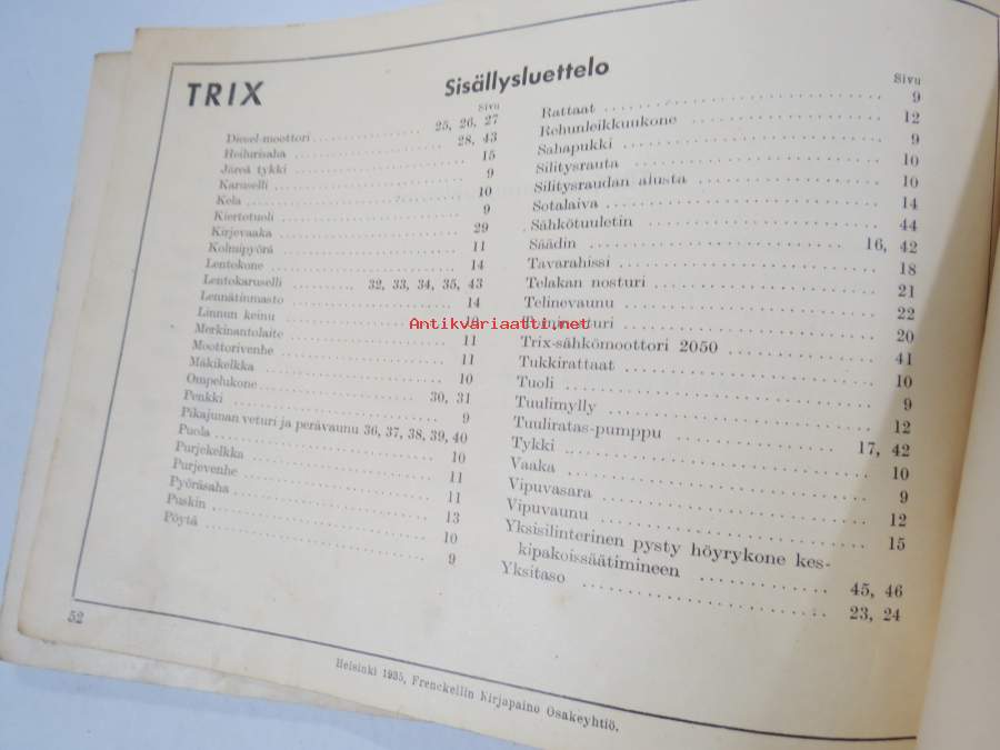 Trix Metallikappale-rakennusrasia - Näyte- ja ohjekirja v. 1935