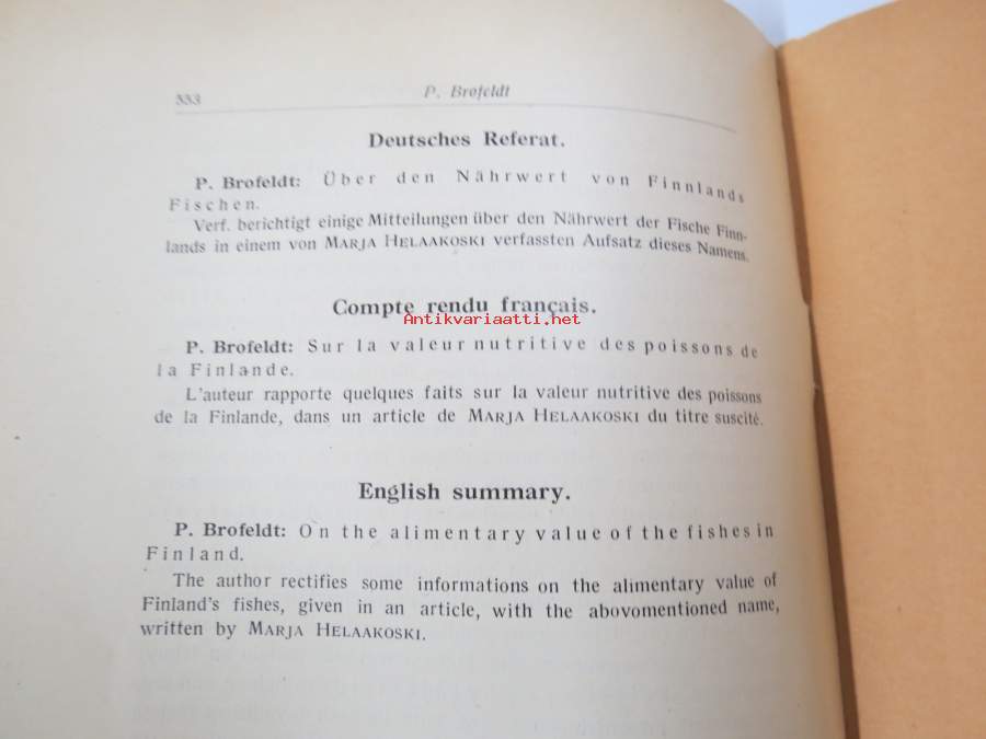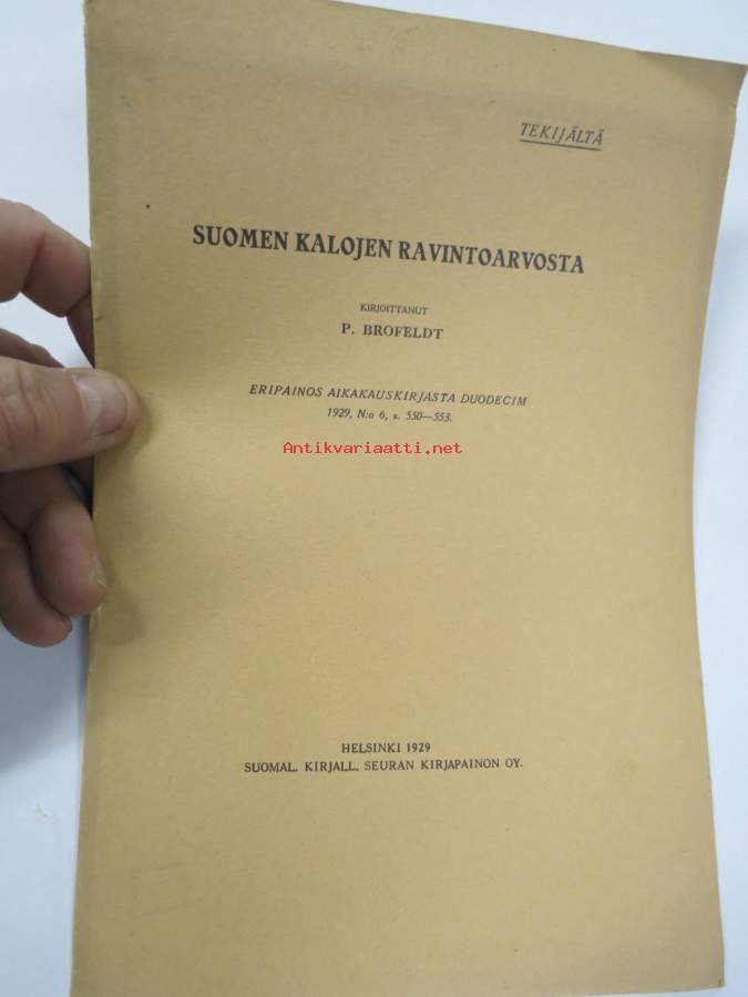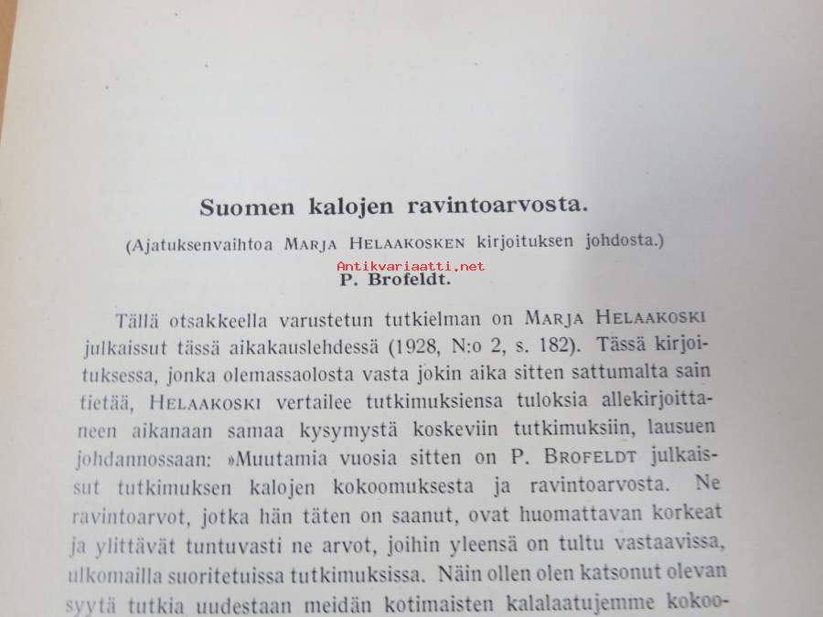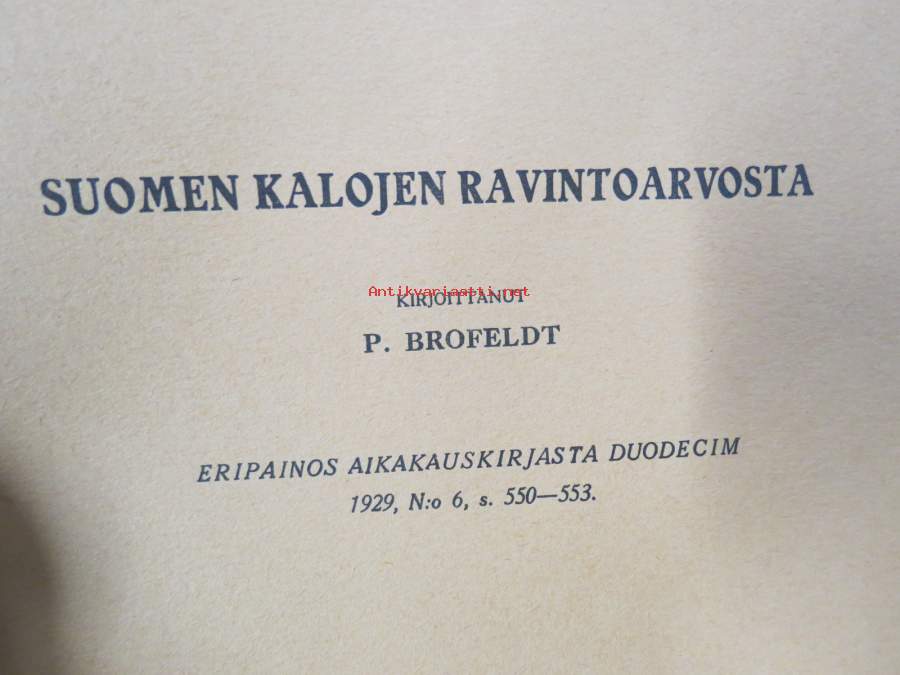 Suomen kalojen ravintoarvosta -eripainos Duodecim 1919 nr 6