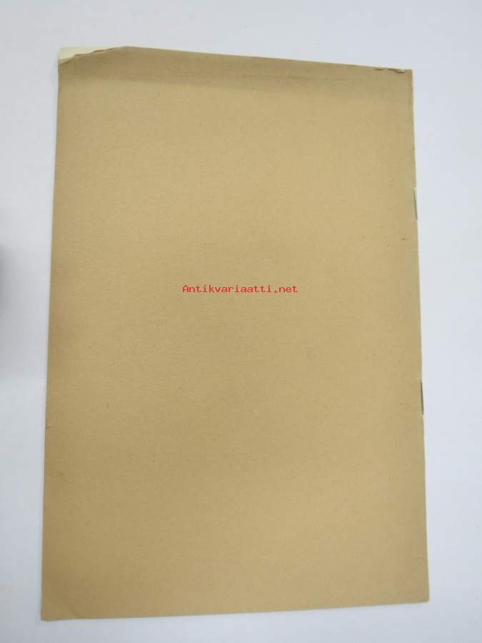 | Saatavilla | 1 kpl | | Julkaisuvuosi | 1929 | | Sivuja | 4 | | Painos | 1. | | Kunto | K2 | | Sidonta/painoasu | Pienpainate | | Kielet | Suomi |