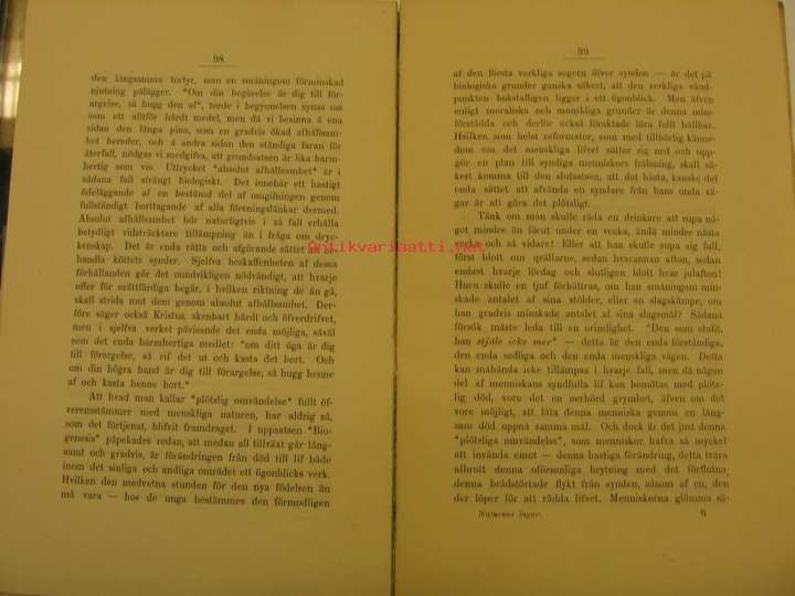 | Saatavilla | 1 kpl | | Julkaisuvuosi | 1877 | | Sivuja | 62 | | Kunto | K2 | | kanet puuttuvat | | Sidonta/painoasu | Nidottu (pehmeäk.) | | Kielet | Ruotsi |