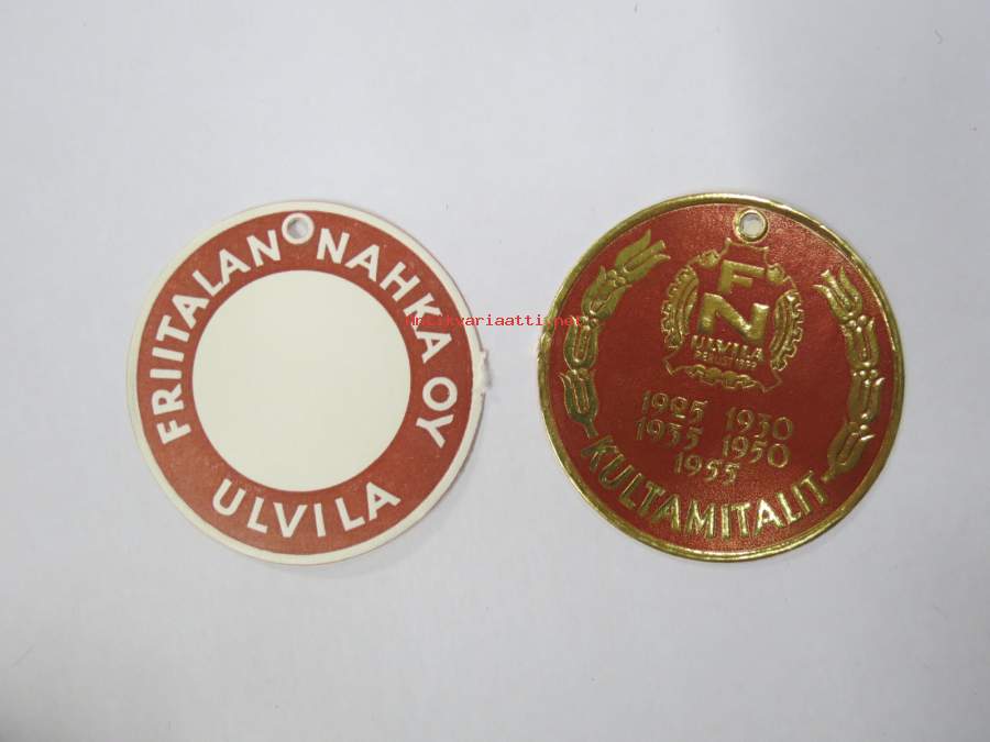 Friitalan Nahka Oy, Ulvila -hintalappu / tuotetietolappu, merkin valmistaja Herman Mattsson Korkokuvapaino & Pussitehdas, Vaasa