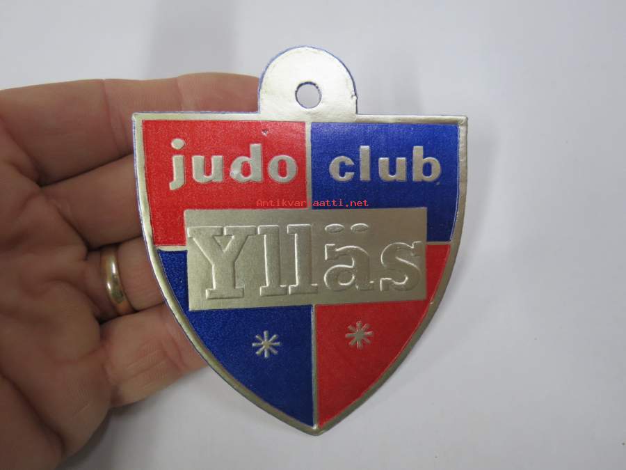 Ylläs judo club -hintalappu / tuotetietolappu, merkin valmistaja Herman Mattsson Korkokuvapaino & Pussitehdas, Vaasa