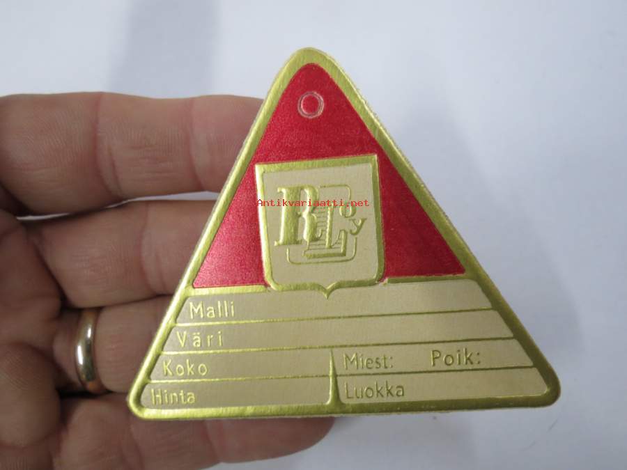 RL Oy -hintalappu / tuotetietolappu, merkin valmistaja Herman Mattsson Korkokuvapaino & Pussitehdas, Vaasa