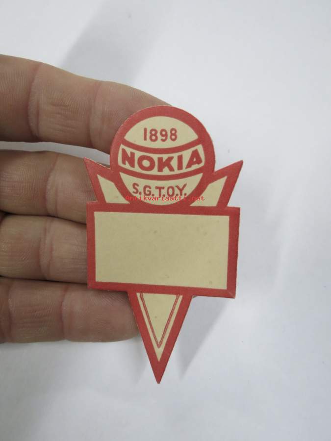 Nokia S.G.T. Oy -hintalappu / tuotetietolappu, merkin valmistaja Herman Mattsson Korkokuvapaino & Pussitehdas, Vaasa