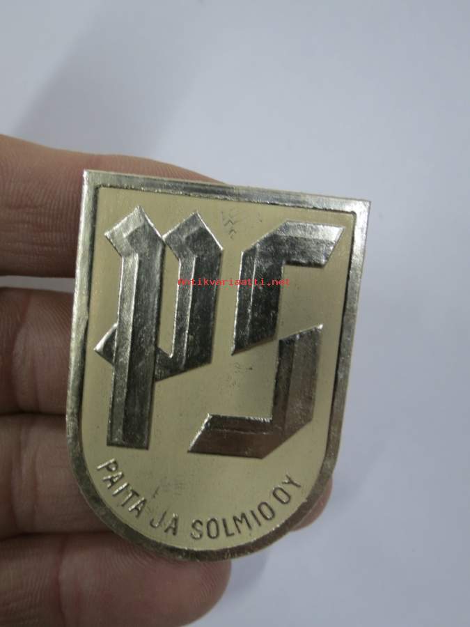 PS Paita ja Solmio Oy -hintalappu / tuotetietolappu, merkin valmistaja Herman Mattsson Korkokuvapaino & Pussitehdas, Vaasa