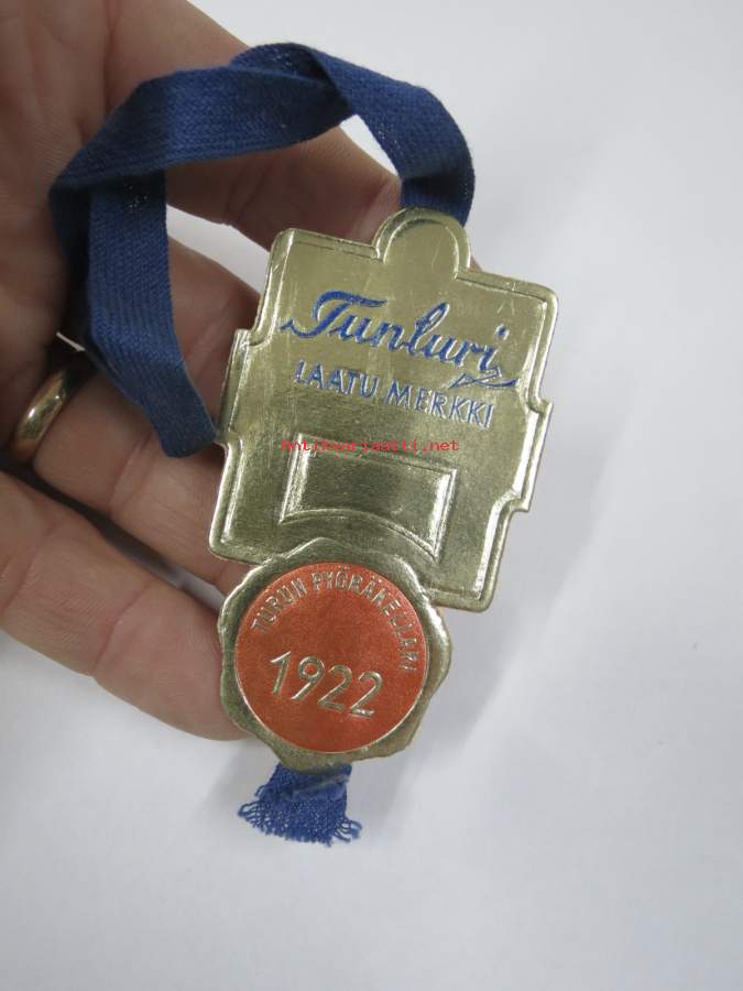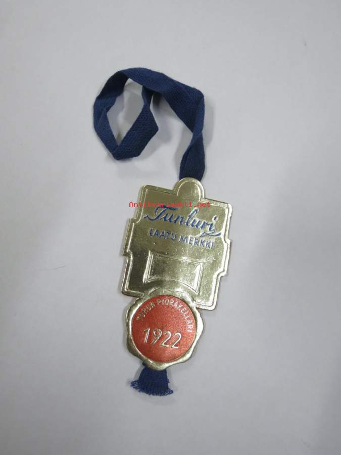 Tunturi - Laatumerkki - Turun Pyöräkellari 1922 -hintalappu / tuotetietolappu, merkin valmistaja Herman Mattsson Korkokuvapaino & Pussitehdas, Vaasa