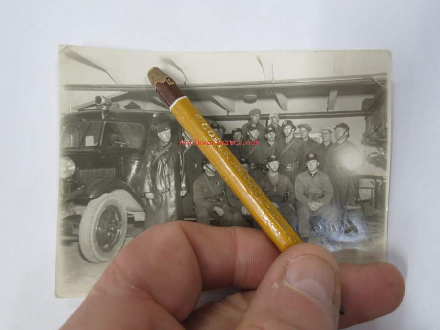 Paloauto, palomiehiä (kaikki nimetty, kirjoitettu kuvan tasutapuolelle, kuvaustietona; "otettu noin v. 1938-39" -valokuva
