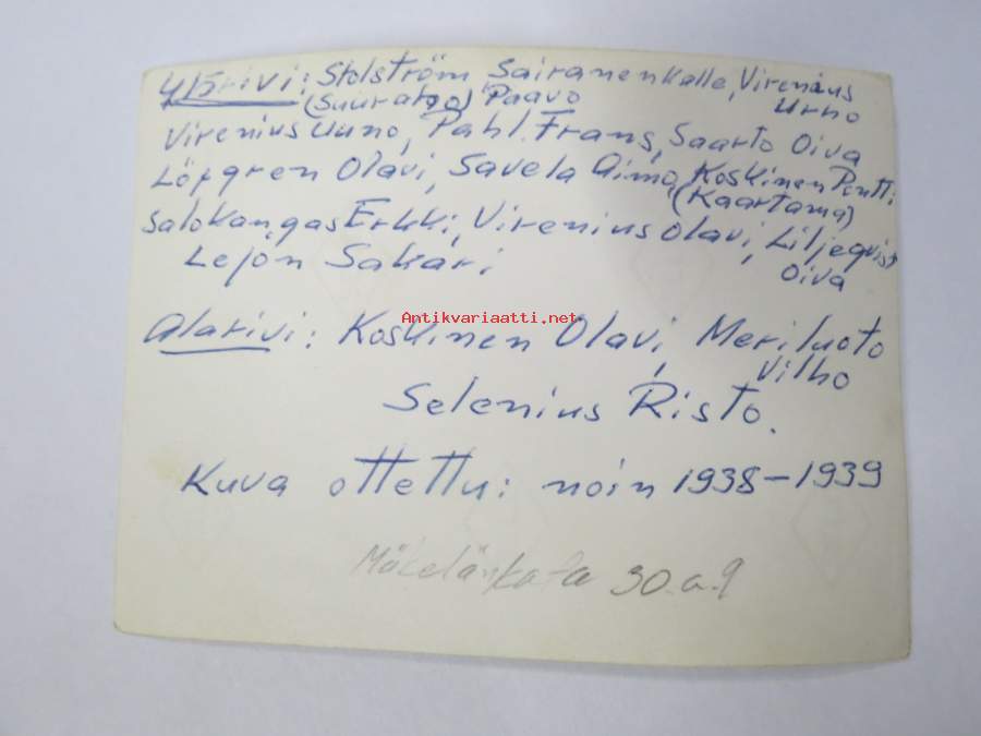| Saatavilla | 1 kpl | | Kunto | K2 | | Sidonta/painoasu | Valokuva |