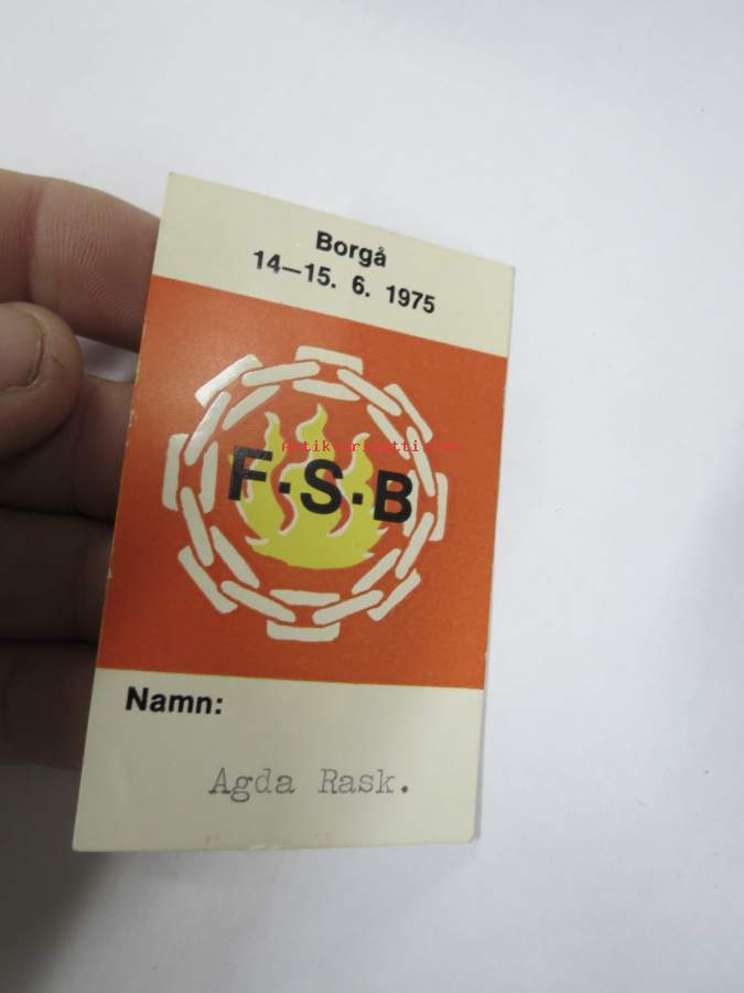 Palokuntapäivät? Borgå 1975 Agda Rask -tarra