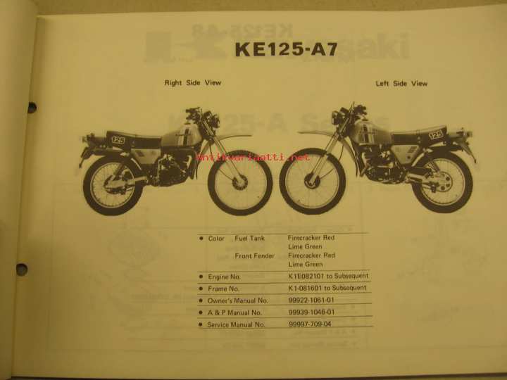 Kawasaki KE125-A parts catalog varaosaluettelo