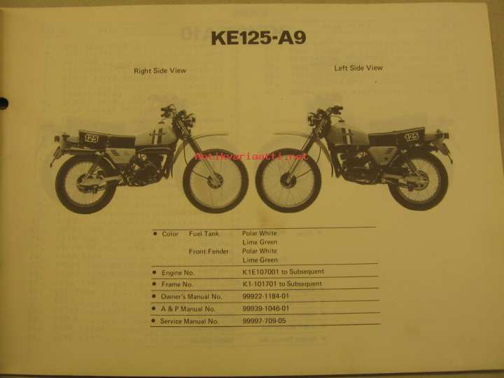 Kawasaki KE125-A parts catalog varaosaluettelo