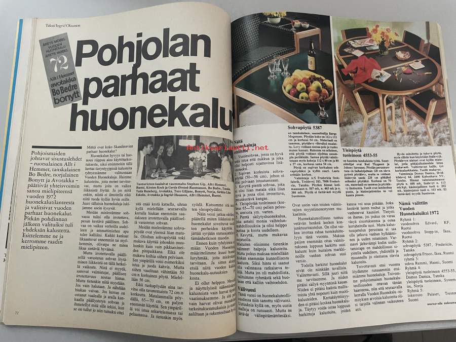 Avotakka 1972 nr 9, Simo Lampisen kotona, Perttu Mentulan mökki Savitaipaleella, Pohjolan parhaat huonekalut