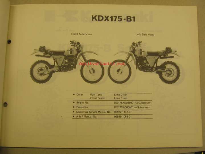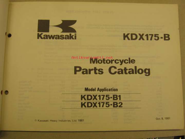 Kawasaki KDX175-B parts catalogue varaosaluettelo