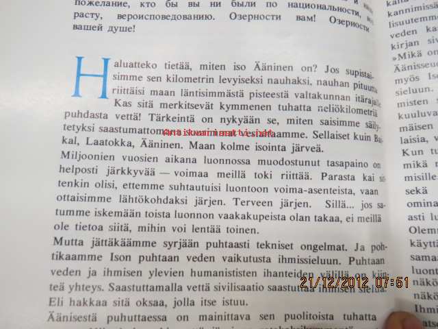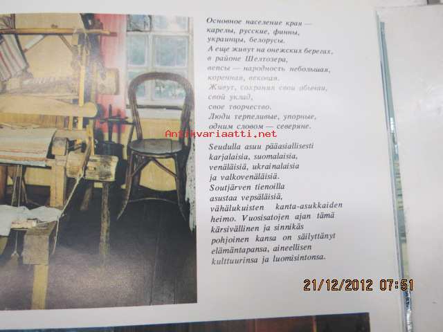 | Saatavilla | 1 kpl | | Julkaisuvuosi | 1988 | | Sivuja | 144 | | Painos | 1. | | Kunto | K3 | | Sidonta/painoasu | Kuvitettu kovakantinen | | ISBN | 5-7545-0096-3 | | Kielet | Suomi, Venäjä |